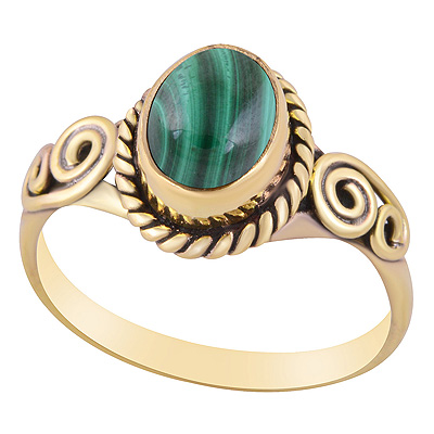 Home | Fashion Rings | Brass Gemstone Rings | Gorgeous Twisted Wire Work Around Malachite Oval Shape Solid Brass Ring