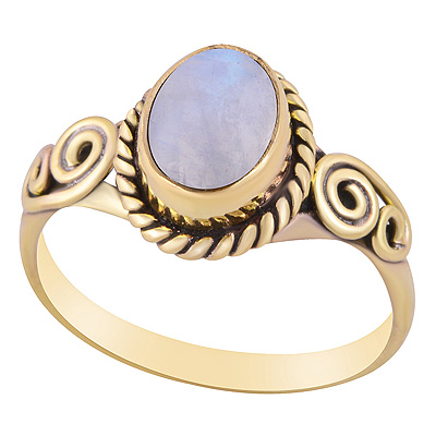 Home | Fashion Rings | Brass Gemstone Rings | Gorgeous Twisted Wire Work Around Rainbow Moonstone Oval Shape Solid Brass Ring