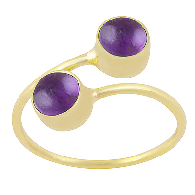 Home | Fashion Rings | Brass Gemstone Rings | Gorgeous Two Stone Amethyst Round Shape Solid Brass Ring