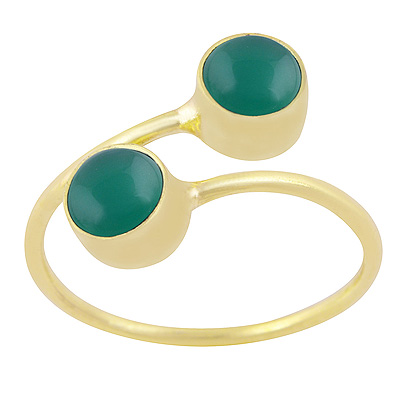 Home | Fashion Rings | Brass Gemstone Rings | Gorgeous Two Stone Green Onyx Round Shape Solid Brass Ring