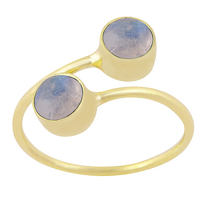 Home | Fashion Rings | Brass Gemstone Rings | Gorgeous Two Stone Rainbow Moonstone Round Shape Solid Brass Ring