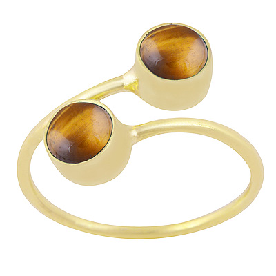 Home | Fashion Rings | Brass Gemstone Rings | Gorgeous Two Stone Tiger's Eye Round Shape Solid Brass Ring
