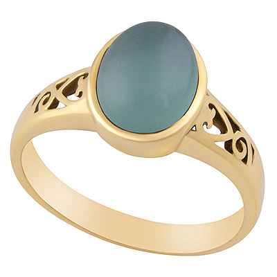 Home | Fashion Rings | Brass Gemstone Rings | Beautiful Jali Work Around Aqua Chalcedony Oval Shape Solid Brass Ring