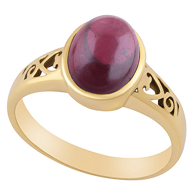 Home | Fashion Rings | Brass Gemstone Rings | Beautiful Jali Work Around Garnet Oval Shape Solid Brass Ring