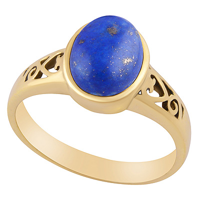 Home | Fashion Rings | Brass Gemstone Rings | Beautiful Jali Work Around Lapis Oval Shape Solid Brass Ring