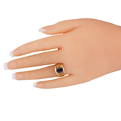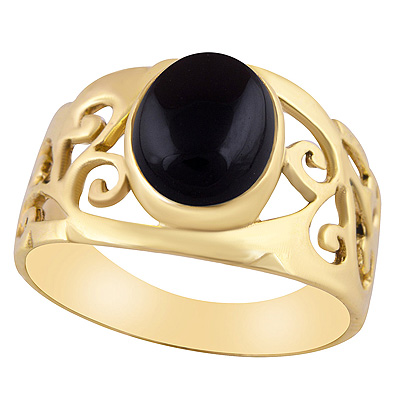 Home | Fashion Rings | Brass Gemstone Rings | Gorgeous Jali Work Around Black Onyx Oval Shape Solid Brass Ring