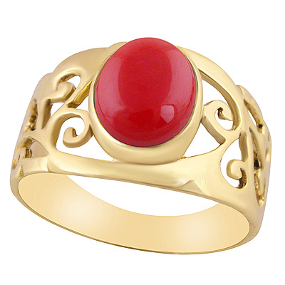 Home | Fashion Rings | Brass Gemstone Rings | Gorgeous Jali Work Around Coral Oval Shape Solid Brass Ring