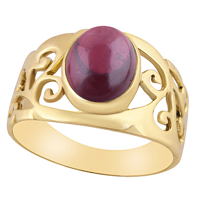 Home | Fashion Rings | Brass Gemstone Rings | Gorgeous Jali Work Around Garnet Oval Shape Solid Brass Ring