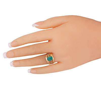 Home | Fashion Rings | Brass Gemstone Rings | Gorgeous Jali Work Around Green Onyx Oval Shape Solid Brass Ring