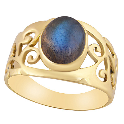 Home | Fashion Rings | Brass Gemstone Rings | Gorgeous Jali Work Around Labradorite Oval Shape Solid Brass Ring