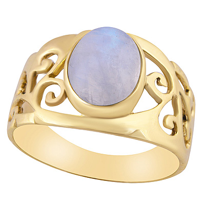 Home | Fashion Rings | Brass Gemstone Rings | Gorgeous Jali Work Around Rainbow Moonstone Oval Shape Solid Brass Ring