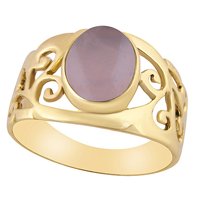 Home | Fashion Rings | Brass Gemstone Rings | Gorgeous Jali Work Around Rose Quartz Oval Shape Solid Brass Ring