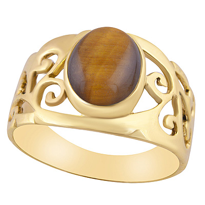 Home | Fashion Rings | Brass Gemstone Rings | Gorgeous Jali Work Around Tiger's Eye Oval Shape Solid Brass Ring