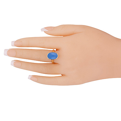 Home | Fashion Rings | Brass Gemstone Rings | Stunning Setting Crown Around Blue Chalcedony Oval Shape Solid Brass Ring
