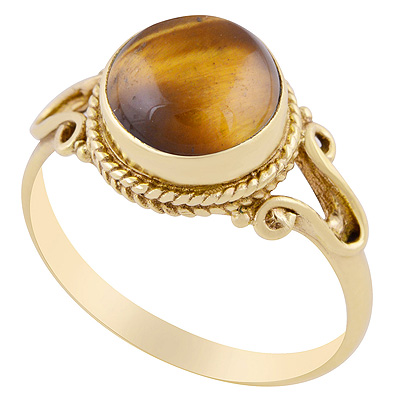 Alluring Rawa & Wire Work Around Tiger's Eye Round Shape Solid Brass Ring