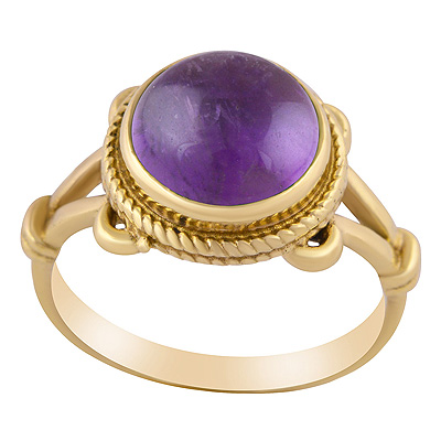 Home | Fashion Rings | Brass Gemstone Rings | Alluring Twisted Wire Work Around Amethyst Round Shape Solid Brass Ring