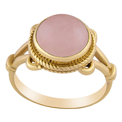 Home | Fashion Rings | Brass Gemstone Rings | Alluring Twisted Wire Work Around Rose Quartz Round Shape Solid Brass Ring