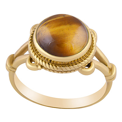 Home | Fashion Rings | Brass Gemstone Rings | Alluring Twisted Wire Work Around Tiger's Eye Round Shape Solid Brass Ring