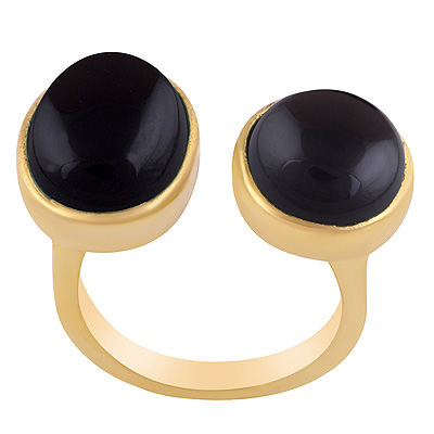 Home | Fashion Rings | Brass Gemstone Rings | Alluring Two Shaped Gemstone Black Onyx Oval,Round Shape Solid Brass Ring
