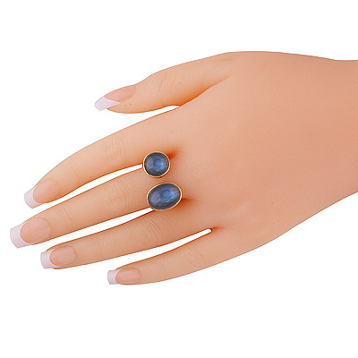 Home | Fashion Rings | Brass Gemstone Rings | Alluring Two Shaped Gemstone Labradorite Oval,Round Shape Solid Brass Ring