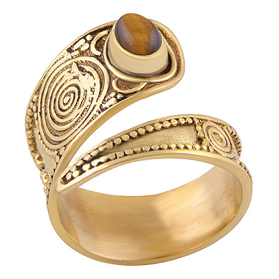 Home | Fashion Rings | Brass Gemstone Rings | Stunning Rawa And Spiral Design Around Tiger's Eye Pear Shape Solid Brass Ring