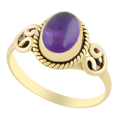 Home | Fashion Rings | Brass Gemstone Rings | Alluring Twisted Wire Work Around Amethyst Oval Shape Solid Brass Ring