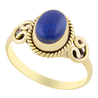 Home | Fashion Rings | Brass Gemstone Rings | Alluring Twisted Wire Work Around Lapis Oval Shape Solid Brass Ring
