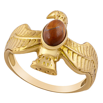 Home | Fashion Rings | Brass Gemstone Rings | Gorgeous Eagle Bird Around Tiger's Eye Oval Shape Solid Brass Ring