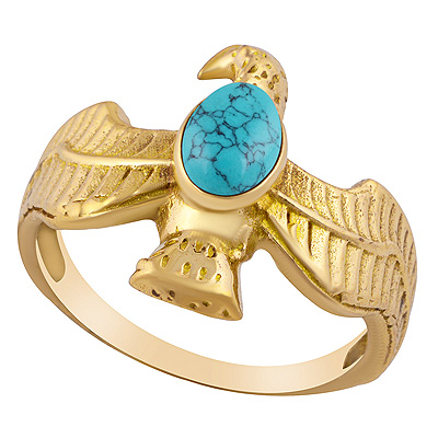 Home | Fashion Rings | Brass Gemstone Rings | Gorgeous Eagle Bird Around Turquoise Oval Shape Solid Brass Ring