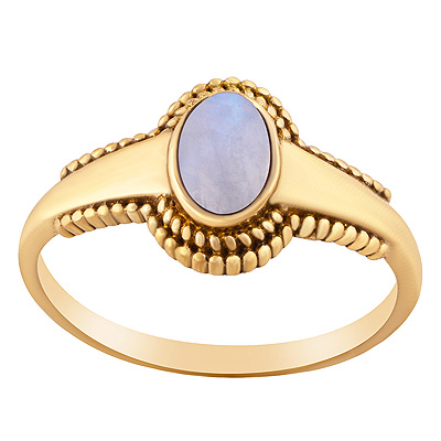 Home | Fashion Rings | Brass Gemstone Rings | Stunning Rawa Work Around Rainbow Moonstone Oval Shape Solid Brass Ring