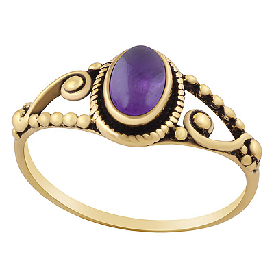 Home | Fashion Rings | Brass Gemstone Rings | Beautiful Oxidised Work Around Amethyst Oval Shape Solid Brass Ring