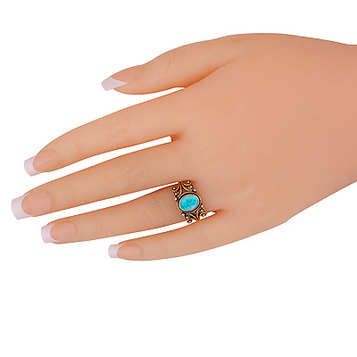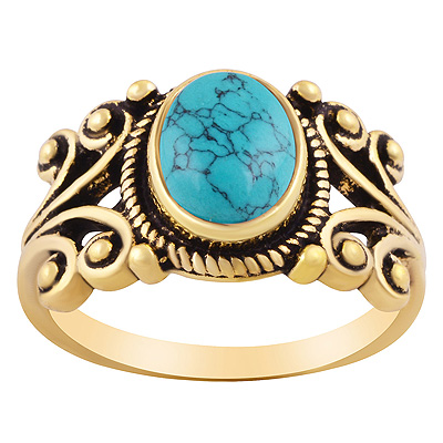 Gorgeous Oxidised Pattern Around Turquoise Oval Shape Solid Brass Ring