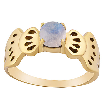Home | Fashion Rings | Brass Gemstone Rings | Stunning Pattern Around Rainbow Moonstone Round Shape Solid Brass Ring