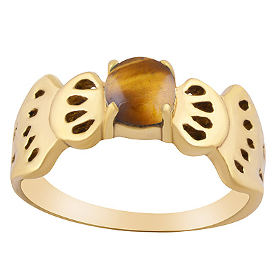 Home | Fashion Rings | Brass Gemstone Rings | Stunning Pattern Around Tiger's Eye Round Shape Solid Brass Ring