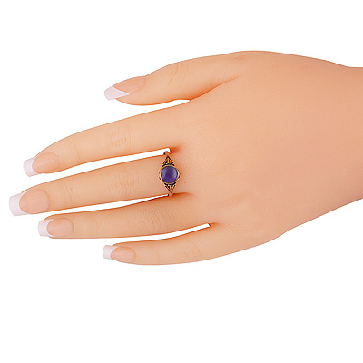 Beautiful Oxidised Pattern Around Rainbow Moonstone Round Shape Solid Brass Ring