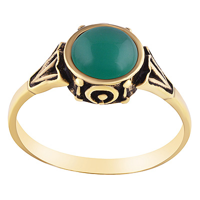 Beautiful Oxidised Pattern Around Green Onyx Round Shape Solid Brass Ring