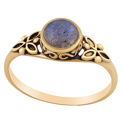 Home | Fashion Rings | Brass Gemstone Rings | Stunning Leaf Pattern Around Labradorite Round Shape Solid Brass Ring