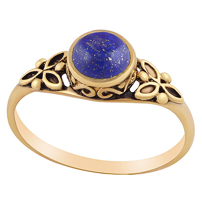 Home | Fashion Rings | Brass Gemstone Rings | Stunning Leaf Pattern Around Lapis Round Shape Solid Brass Ring
