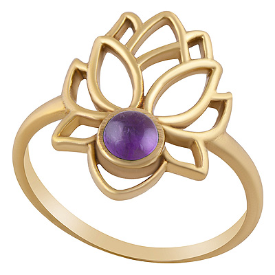 Beautiful Lotus Flower Around Amethyst Round Shape Solid Brass Ring