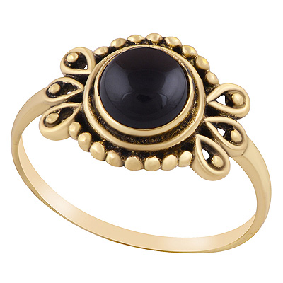 Home | Fashion Rings | Brass Gemstone Rings | Stunning Rawa & Wire Work Around Black Onyx Round Shape Solid Brass Ring