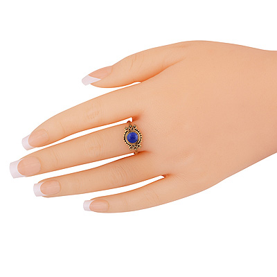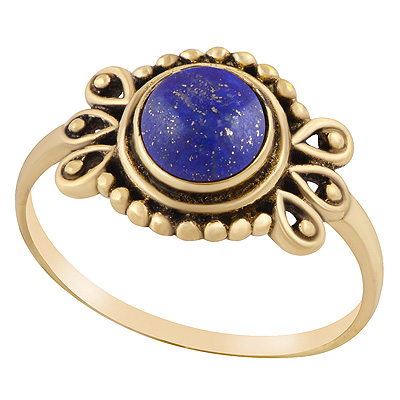 Home | Fashion Rings | Brass Gemstone Rings | Stunning Rawa & Wire Work Around Lapis Round Shape Solid Brass Ring