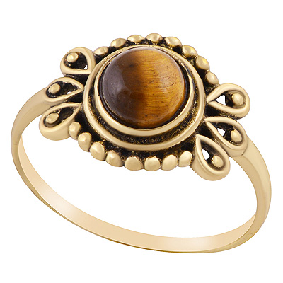 Home | Fashion Rings | Brass Gemstone Rings | Stunning Rawa & Wire Work Around Tiger's Eye Round Shape Solid Brass Ring