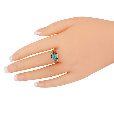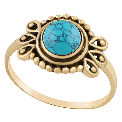 Home | Fashion Rings | Brass Gemstone Rings | Stunning Rawa & Wire Work Around Turquoise Round Shape Solid Brass Ring