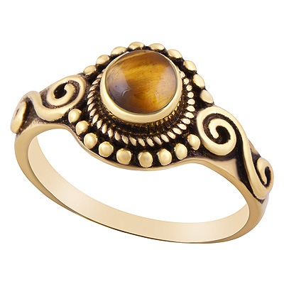Gorgeous Rawa & Wire Work Around Tiger's Eye Round Shape Solid Brass Ring