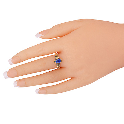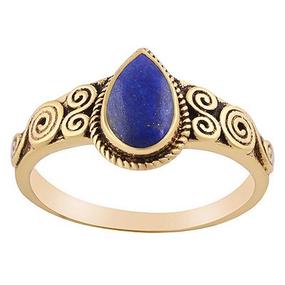 Home | Fashion Rings | Brass Gemstone Rings | Gorgeous Spiral Patterns Around Lapis Pear Shape Solid Brass Ring