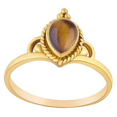 Home | Fashion Rings | Brass Gemstone Rings | Stunning Twisted Wire & Rawa Work Around Tiger's Eye Pear Shape Solid Brass Ring