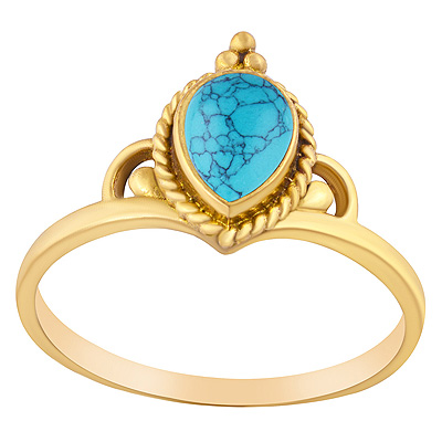 Home | Fashion Rings | Brass Gemstone Rings | Stunning Twisted Wire & Rawa Work Around Turquoise Pear Shape Solid Brass Ring