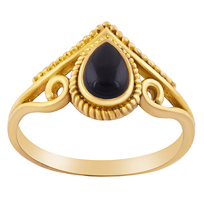 Home | Fashion Rings | Brass Gemstone Rings | Alluring Twisted Wire & Rawa Work Around Black Onyx Pear Shape Solid Brass Ring