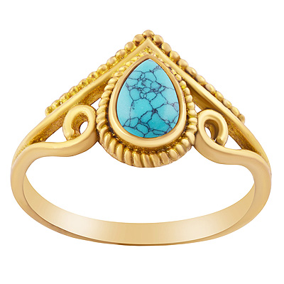 Home | Fashion Rings | Brass Gemstone Rings | Alluring Twisted Wire & Rawa Work Around Turquoise Pear Shape Solid Brass Ring