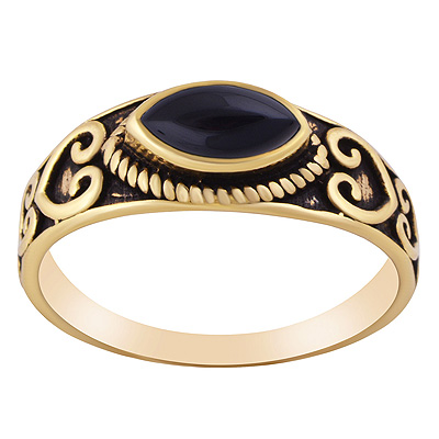 Home | Fashion Rings | Brass Gemstone Rings | Beautiful Oxidised Pattern Around Black Onyx Marquise Shape Solid Brass Ring
